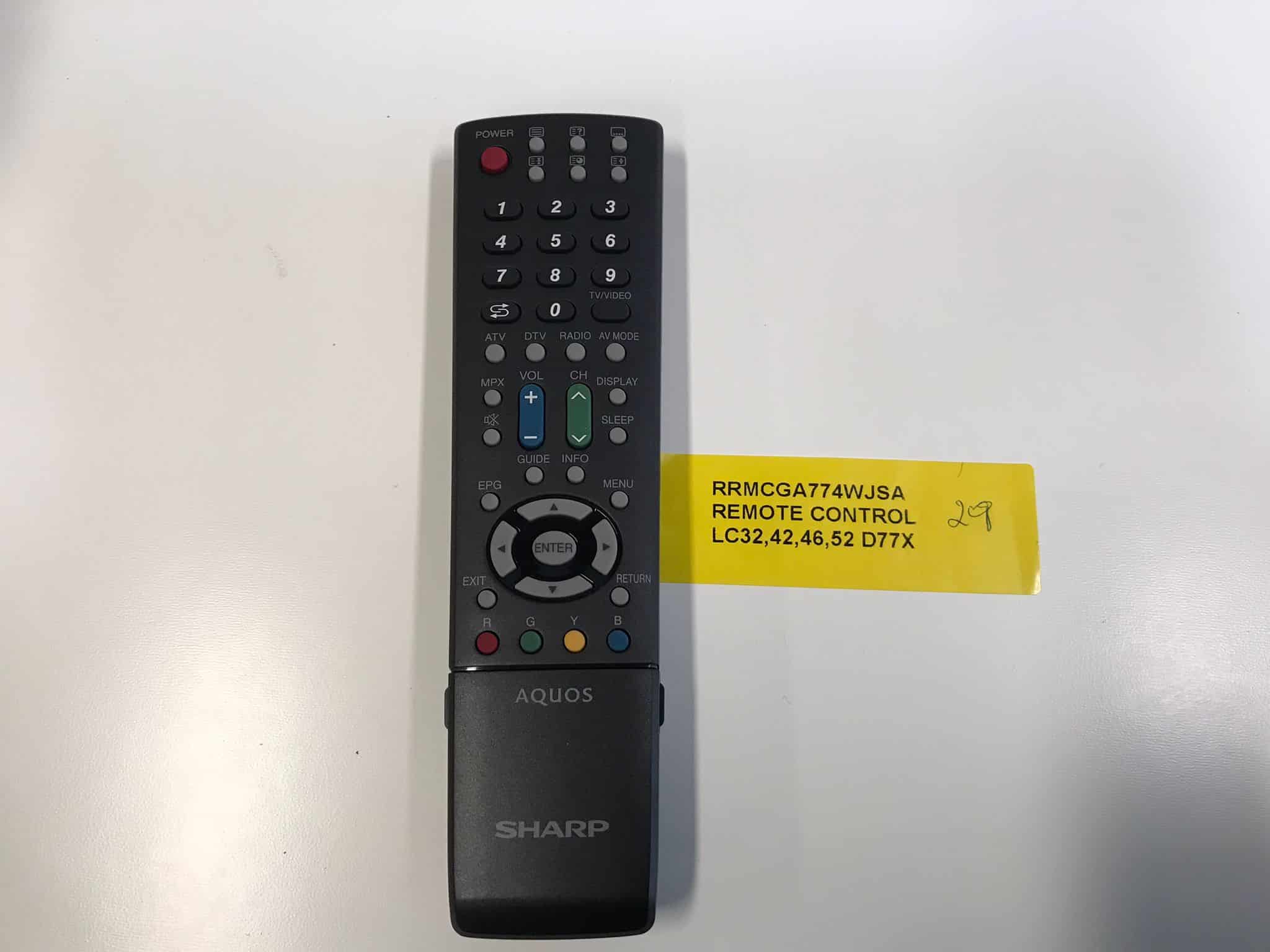 Sharp TV Remote Control RRMCGA774WJSA, Supplier & Distributor of all Sharp TV Remote Controls & Parts. All spare parts for you and for service centers.