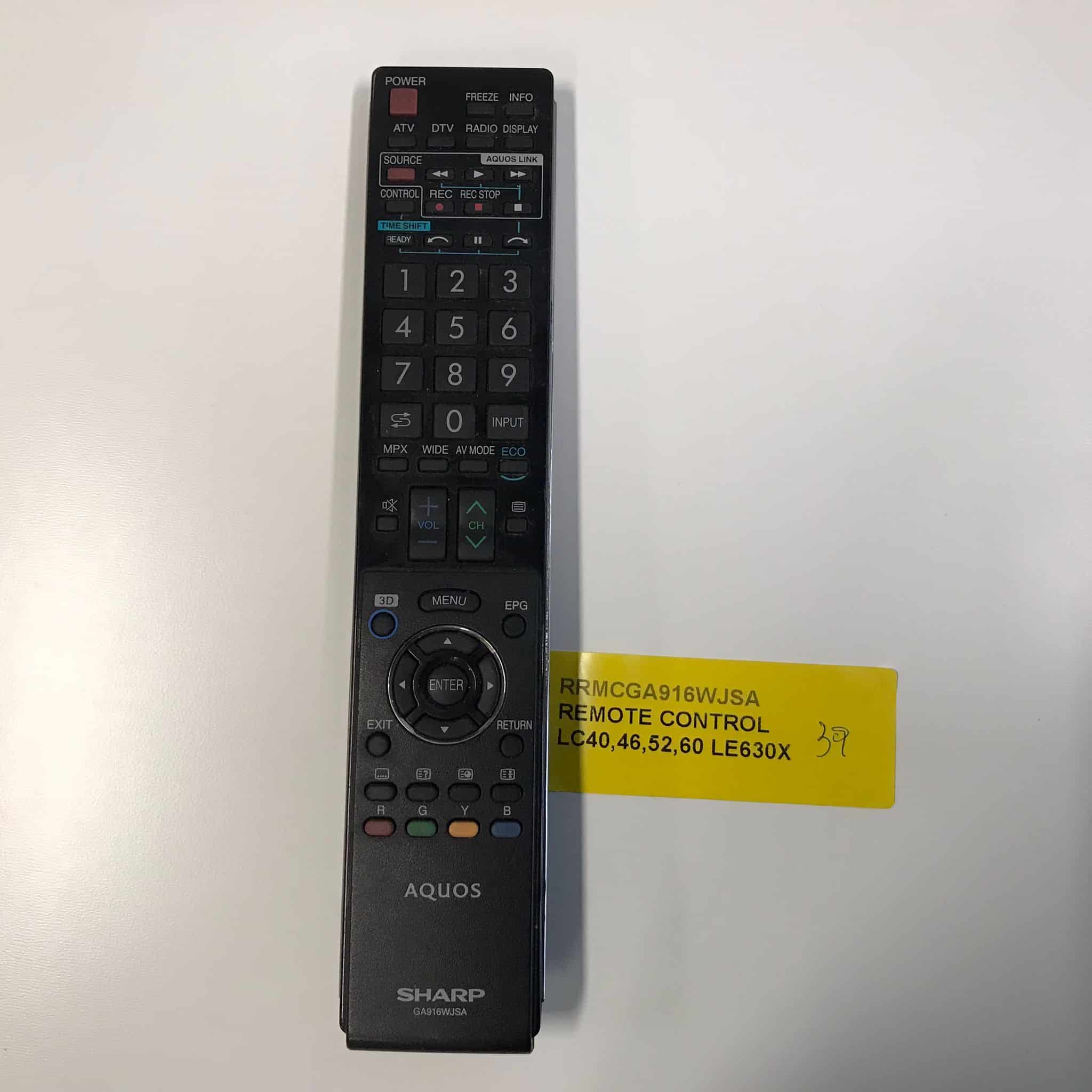 Sharp TV Remote Control RRMCGA916WJSA, Supplier & Distributor of all Sharp TV Remote Controls & Parts. All spare parts for you and for service centers.